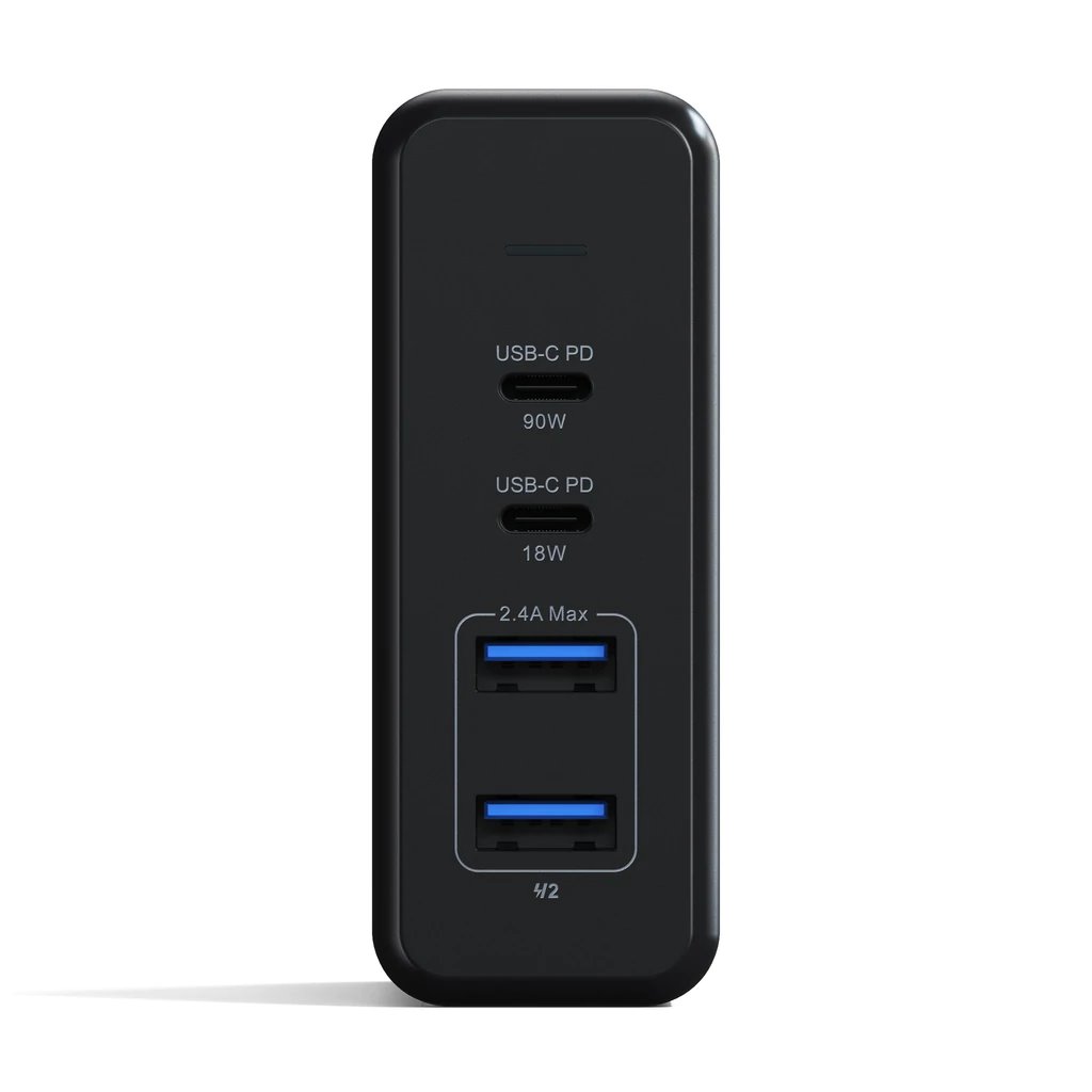 Obsahuje dva porty USB-C PD (90W, 18W) a dva porty USB-A (celkem: 12W) pro nabíjení až čtyř USB zařízení najednou. Nabíjecí kabely nejsou součástí dodávky.