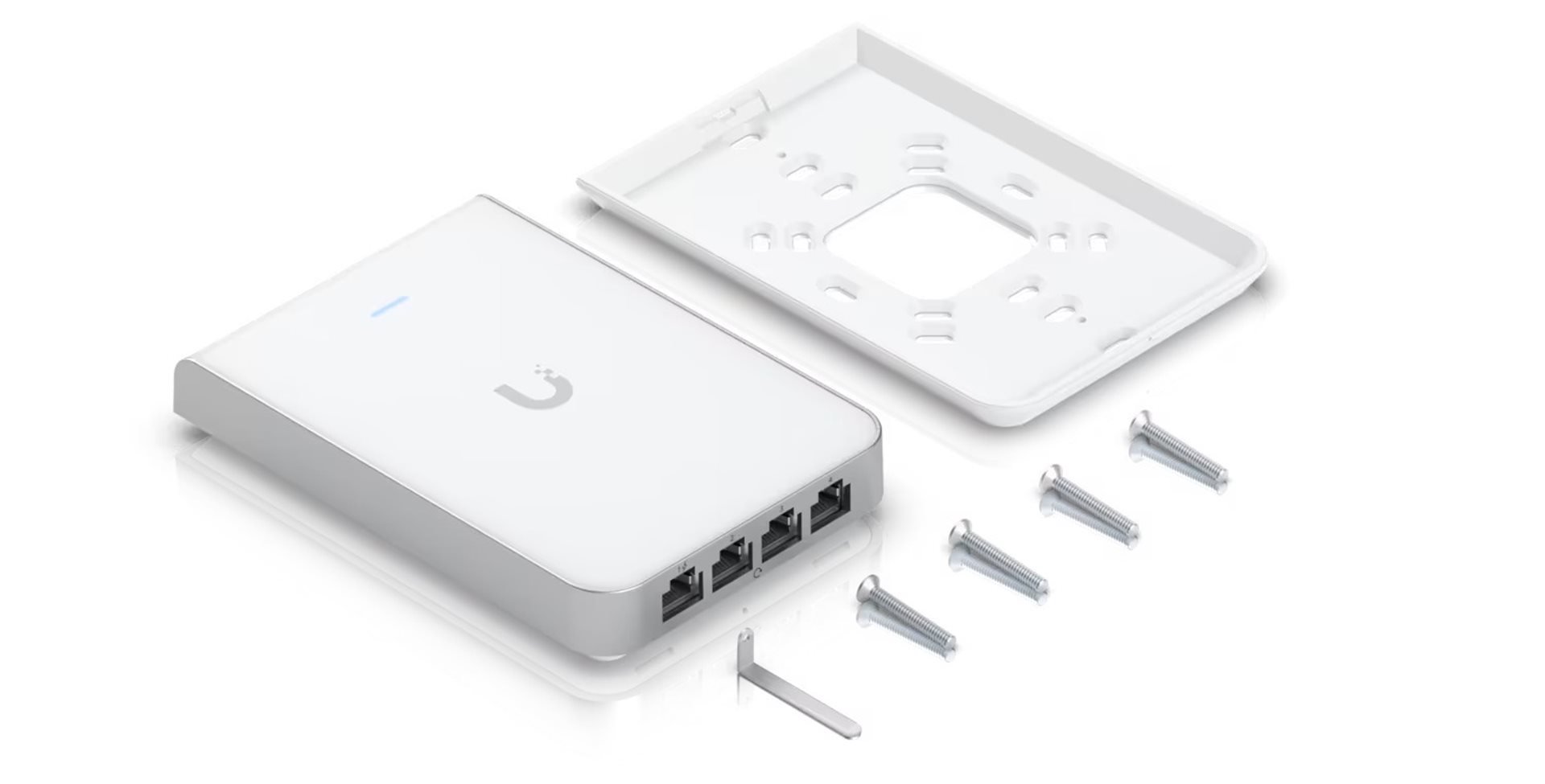UniFi6 In-Wall; Nástěnný přístupový bod WiFi 6 s vestavěným PoE switchem. Funkce: podpora WiFi 6 (pásma 2,4/5GHz); pásmo 5GHz (4x4 MU-MIMO a OFDMA) s propustností až 4,8Gb/s; pásmo 2,4GHz (2x2...