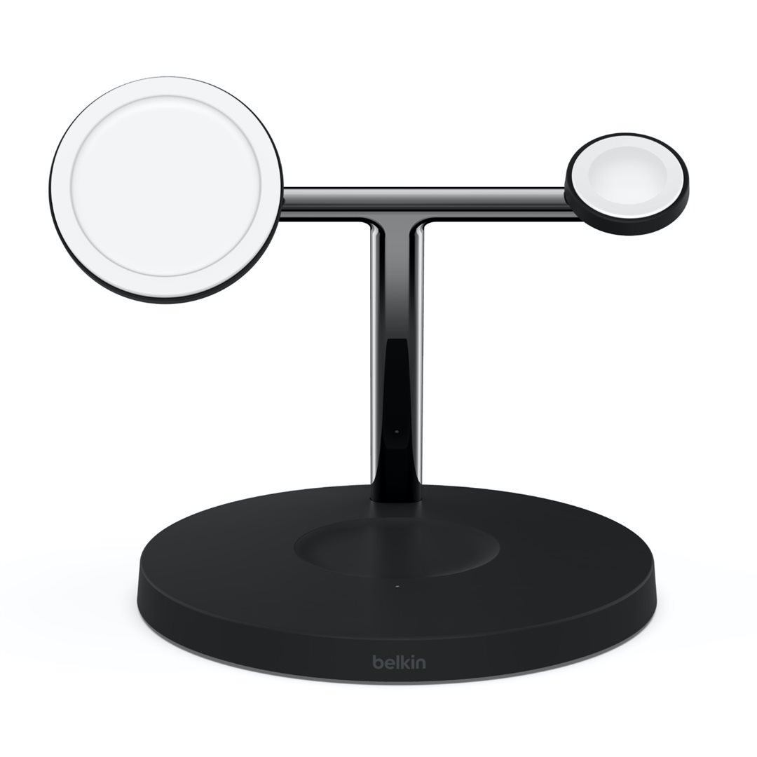 Belkin BoostCharge Pro - bezdrátová nabíječka 3v1 s 15W technologií MagSafe; Nabíjejte svá zařízení Apple rychleji pomocí výkonného nabíjecího stojánku, který integruje nejnovější magnetický modul...