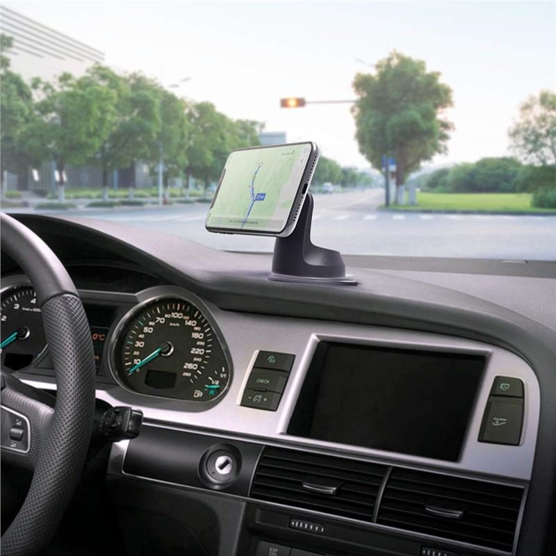 konstrukce držáku je vybavena dvěma silnými magnety ze vzácných zemin, které společně s kovovým plíškem bezpečně udrží vaše zařízení