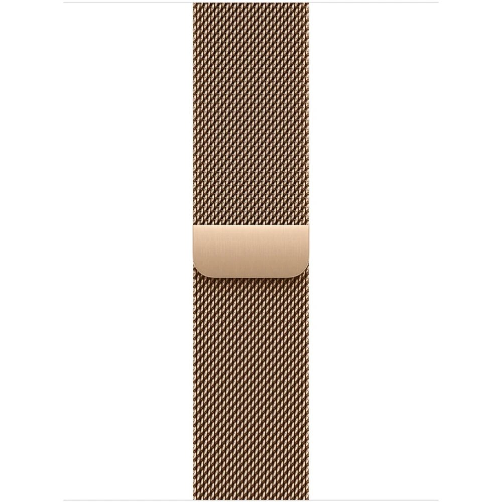 Apple Watch 41/40/38mm zlatý milánský tah; Moderní pojetí designu vyvinutého v Miláně koncem 19. století. Náramek z hladkého nerezového pletiva, tkaného na speciálních italských strojích, se...
