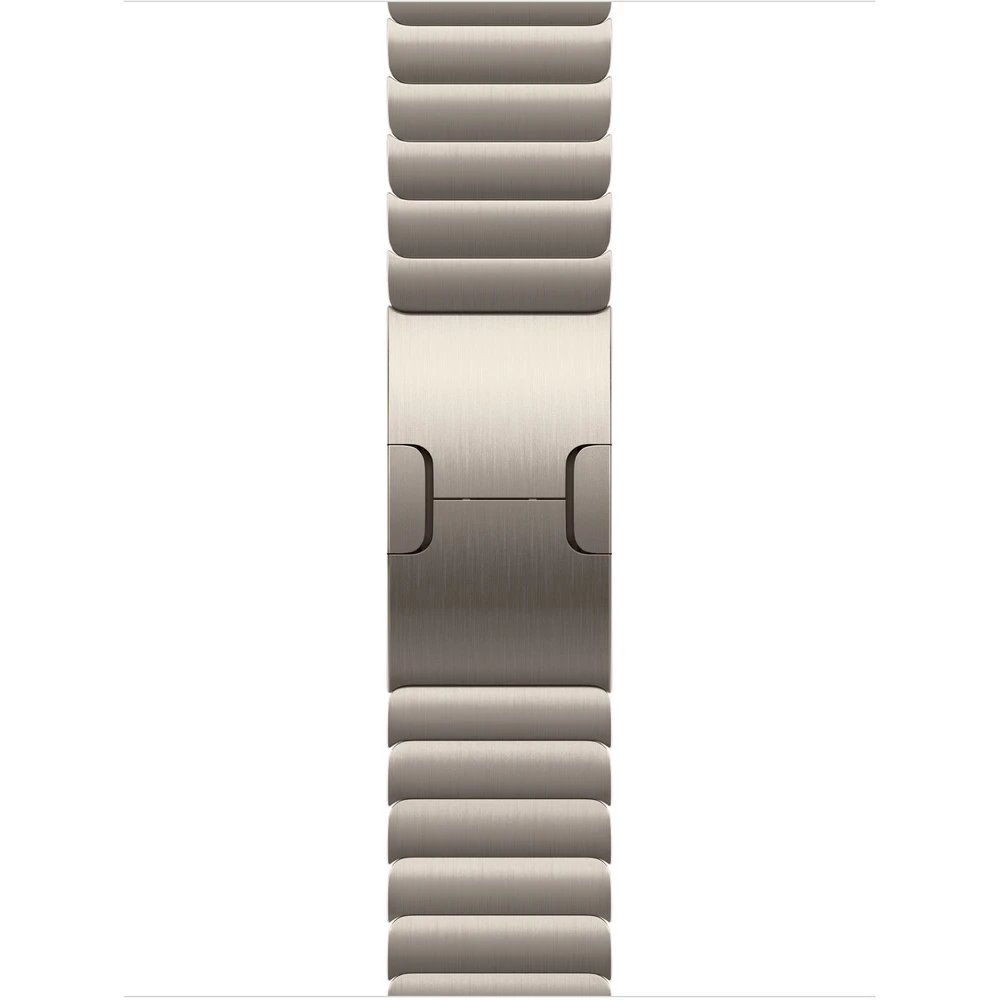 Apple Watch 42/41/40mm přírodní článkový tah; Článkový tah, vyrobený z nerezové oceli 316L, se skládá z více než 100 dílků. Proces obrábění oceli je tak přesný, že vyřezání článků pro jediný náramek...