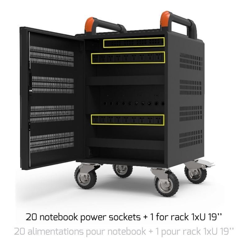 Originální napájecí vozík s funkcí dobíjení, kolečky pro transport a bezpečnostním zámkem pro 20 notebooků a 1x RACK U19"