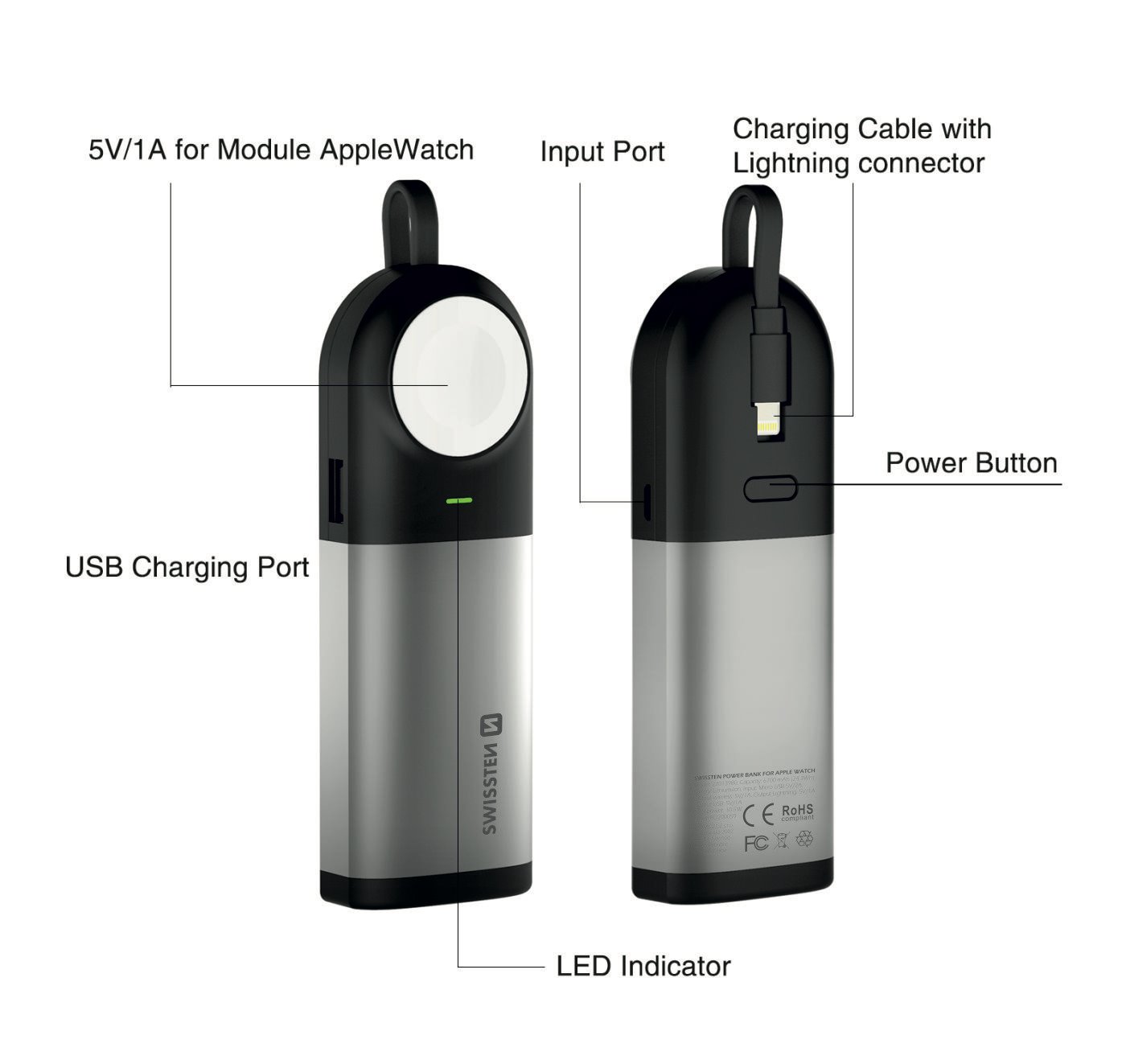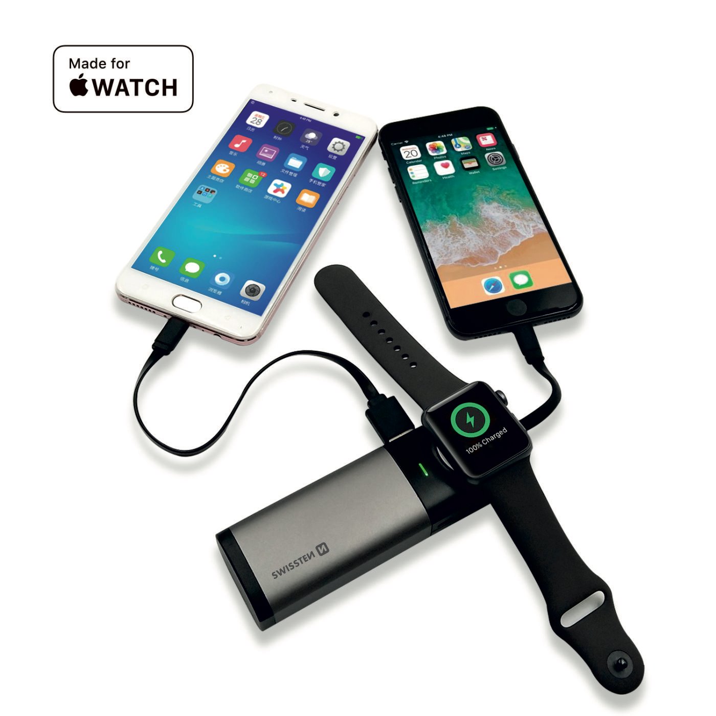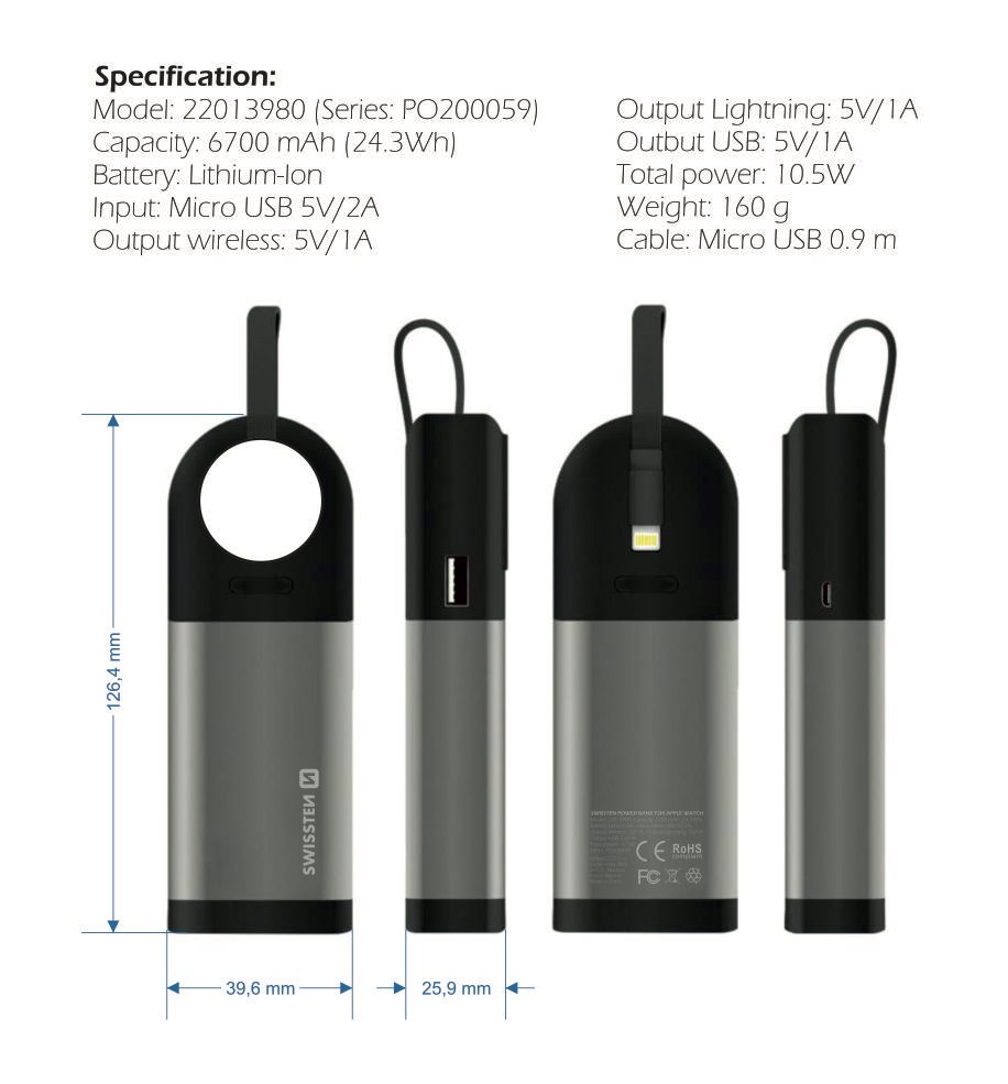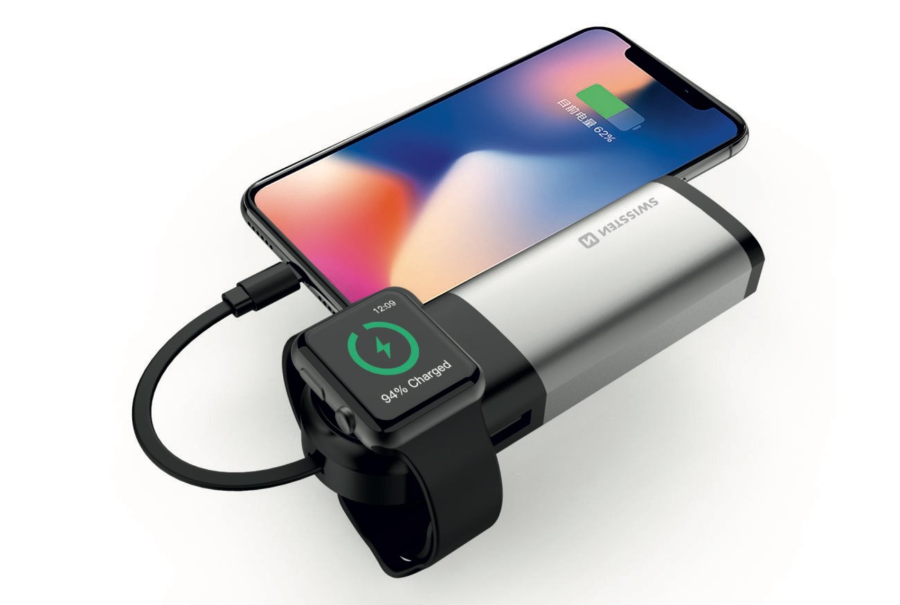 Powerbanku Swissten s certifikovaným výstupem lightning MFI, bezdrátovým nabíjením pro Apple Watch a výstupem USB díky své kompaktní velikosti je možné mít ji neustále při sobě připravenou k nabíjení. Baleno v blistru Swissten
